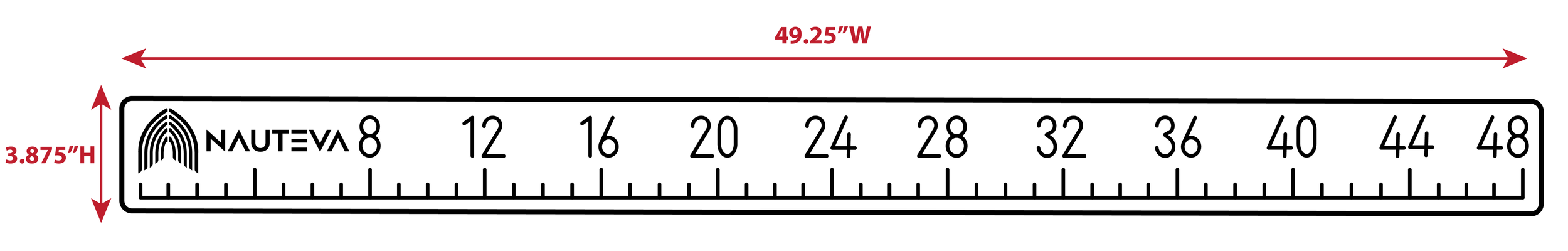 48” fishing ruler with 2 color combinations. 6mm thickness with Pressure Sensitive Adhesive backing. Makes for the perfect installation on boat top rails as well as cooler tops. Installation is a breeze with our 3M adhesive “Peel and Stick” process.