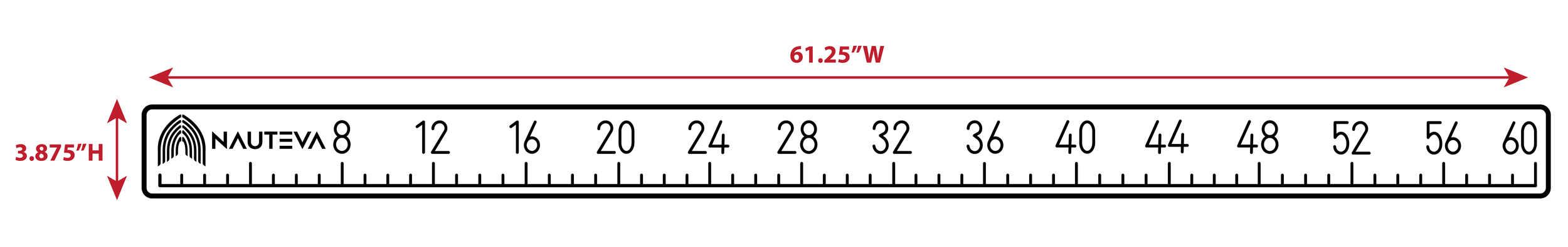 60” fishing ruler with 2 color combinations. 6mm thickness with Pressure Sensitive Adhesive backing. Makes for the perfect installation on boat top rails, as well as cooler tops. Installation is a breeze with our 3M adhesive “Peel and Stick” process.